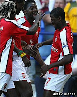 ...Arsenal no topo da tabela com 12 pontos, mais dois que o Chelsea